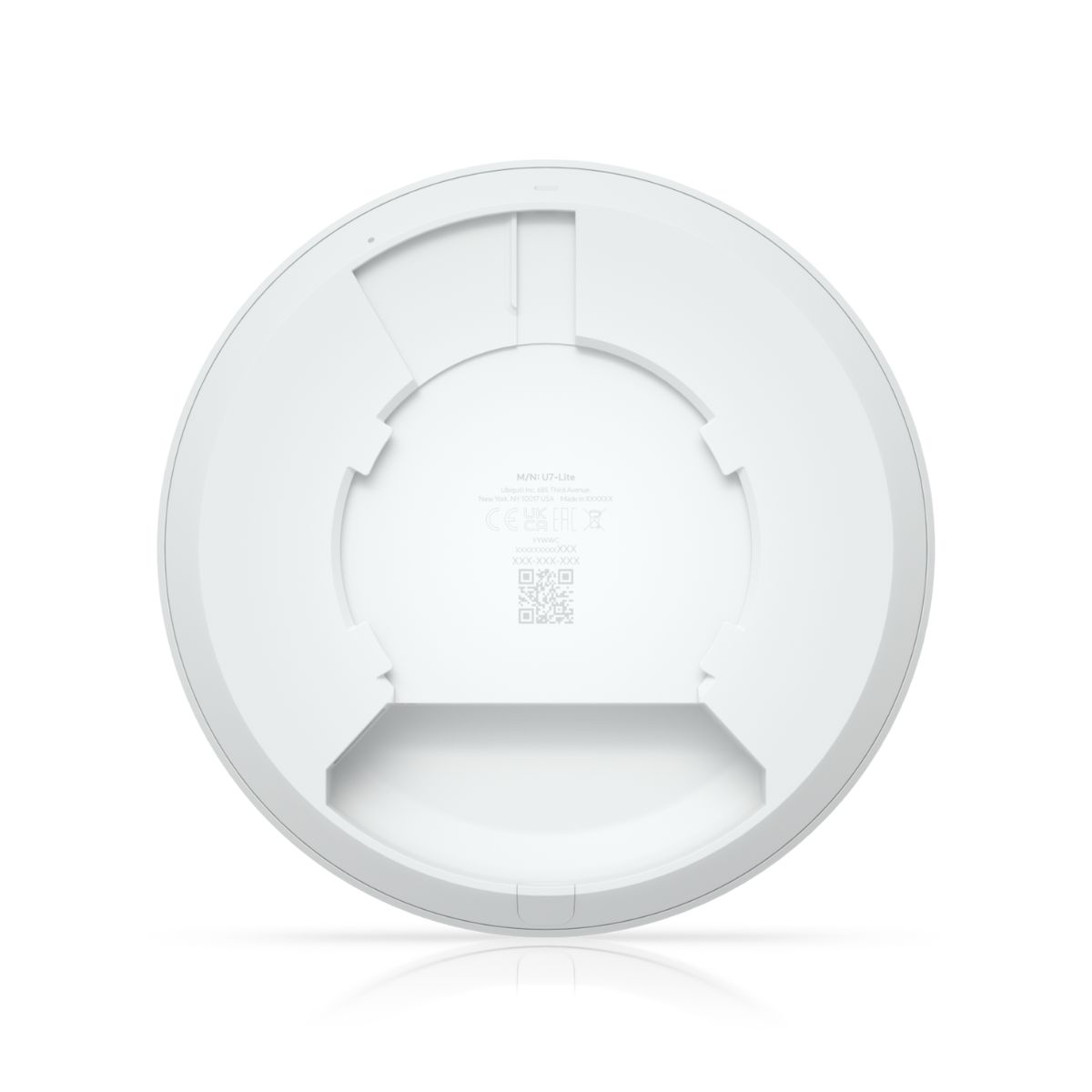 Access Point U7-Lite con WiFi 7 de doble banda. Cobertura de hasta 115 m². Soporta más de 200 dispositivos simultáneamente. Alimentación mediante PoE+ y enlace ascendente de 2,5 GbE.