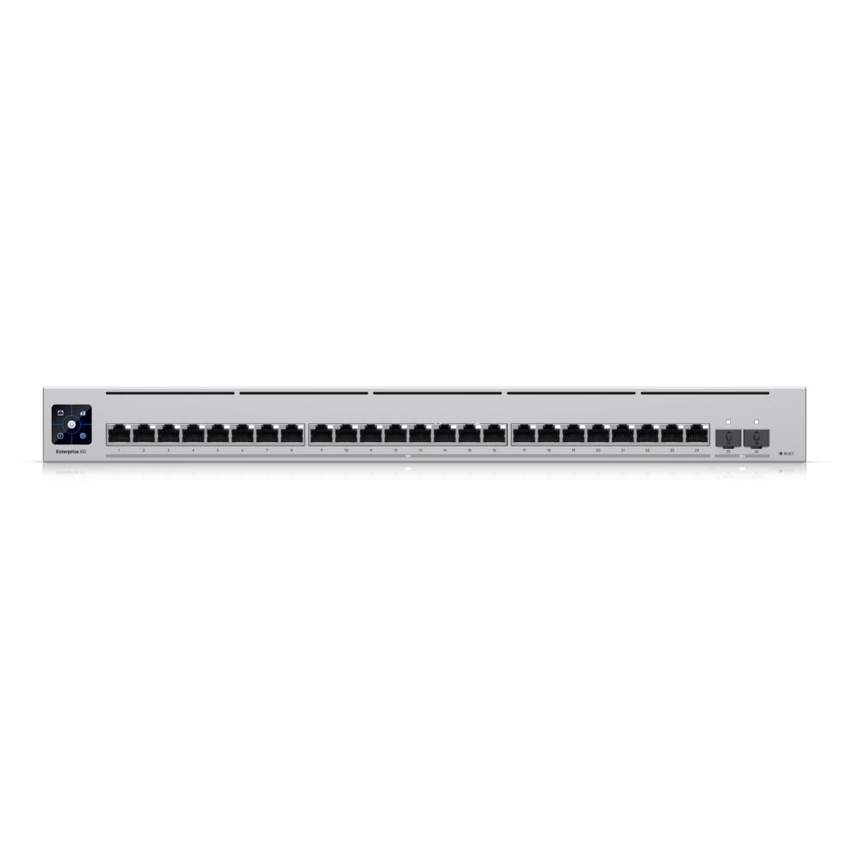 Switch Ubiquiti - USW-EnterpriseXG: 24 Puertos RJ-45 1/ 2.5/ 5/ 10 Gbps - 2 Puertos SFP28 ópticos - Conmutación: 580 Gbps- Tasa de reenvío: 431.52 Mpps - Administrado - Capa 3 - Pantalla táctil de 1.3"
