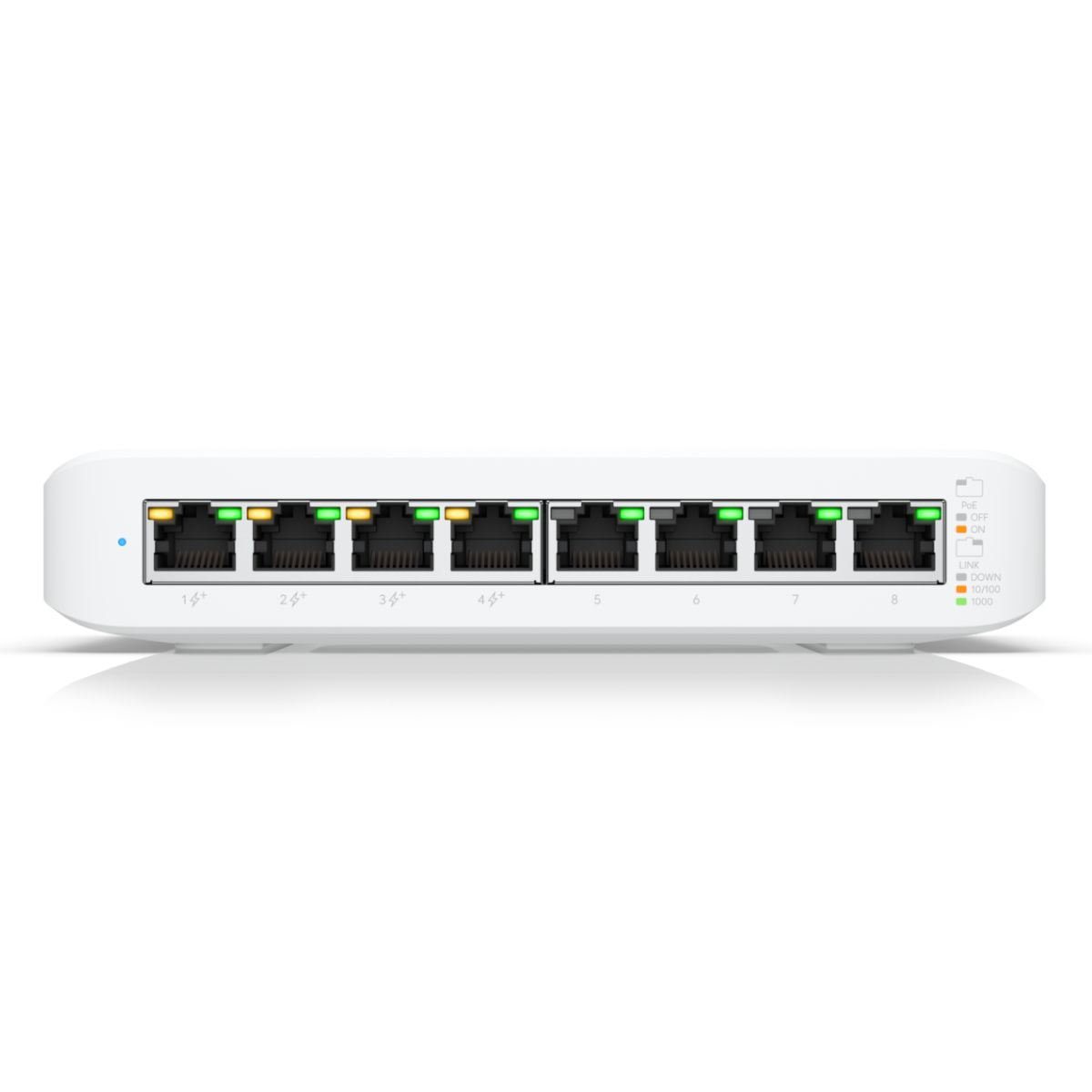 Switch Ubiquiti- USW-LITE-8 - 8 Puertos RJ-45 (4 Puertos PoE+) 1G/100M/10M - Conmutación: 16 Gbps - Rendimiento: 8 Gbps - Tasa de reenvío: 12 Mpps - Administrado - Capa 2