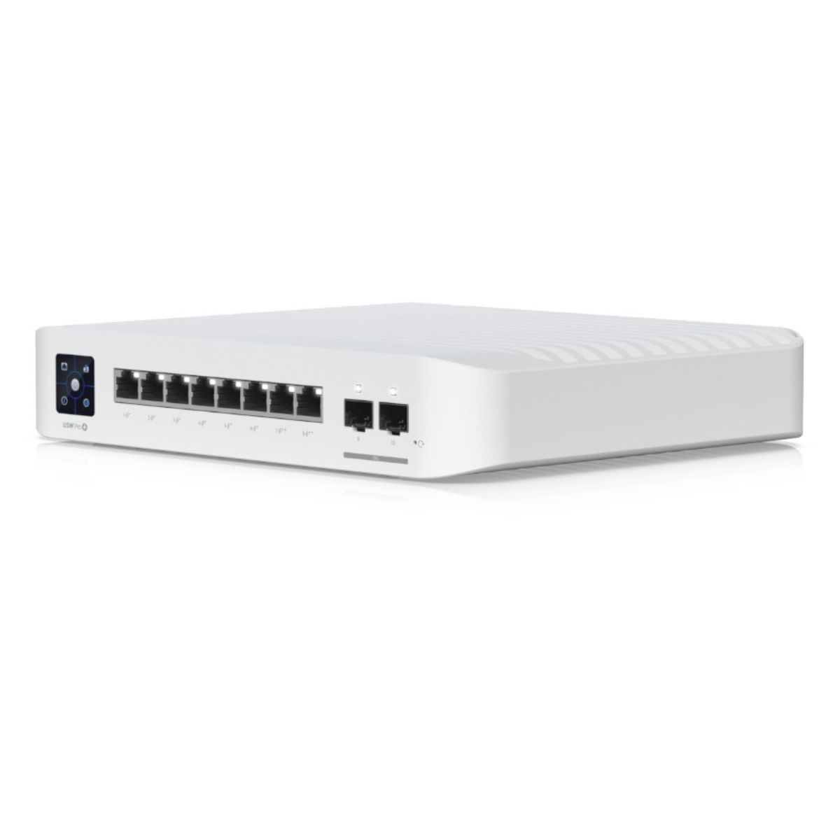 Switch Ubiquiti - USW-PRO-8-POE - 8 Puertos RJ-45; 6 Puertos PoE+, 2 Puertos PoE++ - 2 Puertos SFP+ de 10G - Conmutación: 56 Gbps - Rendimiento: 28 Gbps - Tasa de reenvío: 42 Mpps - Pantalla táctil de 1.3" - Administrado - Capa3